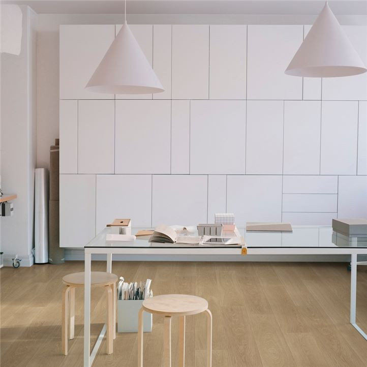 La ranura en V de los laterales de las lamas hace que sea muy difícil diferenciar su suelo de uno de parquet macizo.