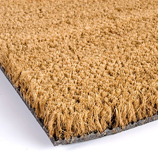 Fabricado con 100% fibra coco natural fijado a una base de PVC. Su naturaleza lo hace retener la suciedad y absorber la humedad. Valido para uso en el interior.