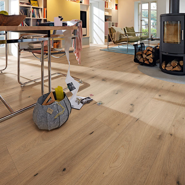 Antiestático, resistente al agua y totalmente resistente a los arañazos, el MeisterDesign. laminate LL 150 es el suelo laminado inteligente para todas las aplicaciones. Con su espesor de 8 mm y una categoría de utilización 23 | 32 AC4, es apropiado para áreas domésticas de uso muy frecuente, como el cuarto de baño, o áreas comerciales (p. ej., tiendas o restaurantes). El tablón XXL, con sus más de 2 m de longitud, tiene una apariencia bastante inusual y demuestra su categoría especialmente en estancias amplias.